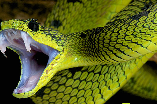 Dans la famille des vipères, réputées pour leur venin mortel, les plus dangereuses sont la vipère heurtante, qui vit en Afrique dans les zones arides, et la vipère fer-de-lance, d'Amérique du Sud. Souvent discrètes, ramassées sur elles-mêmes en pleine nature, elles n'attaquent pas spontanément, mais réagissent très vite si on les surprend ou les dérange.